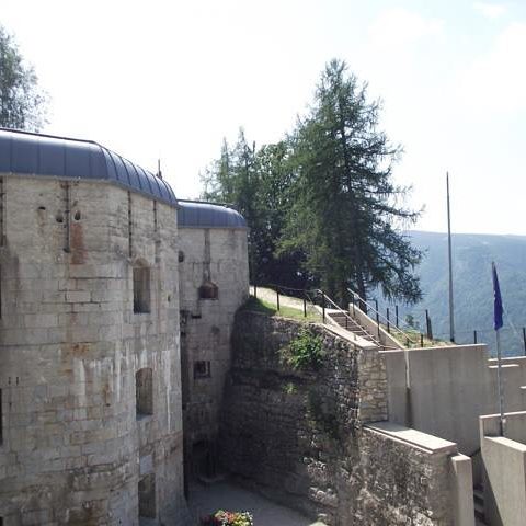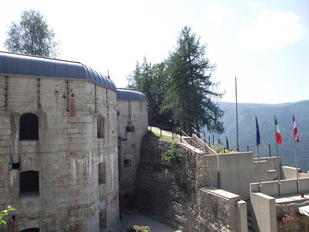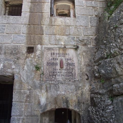 Werk Gschwent di Lavarone, oggi meglio noto come Forte Belvedere, fu progettato dal tenente del Genio ing. Rudolf Schneider e realizzato tra il 1908 e il 1912 poco lontano dall’abitato di Óseli, su uno sperone di roccia calcarea (a quota 1177 m) che sporge a strapiombo sulla Val d’Astico, vallata che all’epoca sanciva il confine di stato fra Regno d’Italia e Austria-Ungheria.. La fortezza è composta da vari blocchi scavati nella montagna: la casamatta principale – che ospitava alloggiamenti, magazzini, servizi logistici – il blocco batterie in posizione avanzata, un’opera di controscarpa nel fossato e tre avamposti corazzati. Per resistere ai più pesanti bombardamenti fu dotato di una copertura di oltre due metri e mezzo di calcestruzzo nel quale fu inserito un triplo strato di putrelle d’acciaio da 400 mm. Concepito, come le altre fortezze degli Altipiani, per resistere in assoluta autonomia a bombardamenti che potevano durare per giorni e giorni, disponeva di ampi depositi, di un acquedotto munito di potabilizzatore, una centrale elettrica interna, un pronto soccorso per gli eventuali feriti, una centrale telefonica e una stanza di telegrafia ottica per poter comunicare con l’esterno.